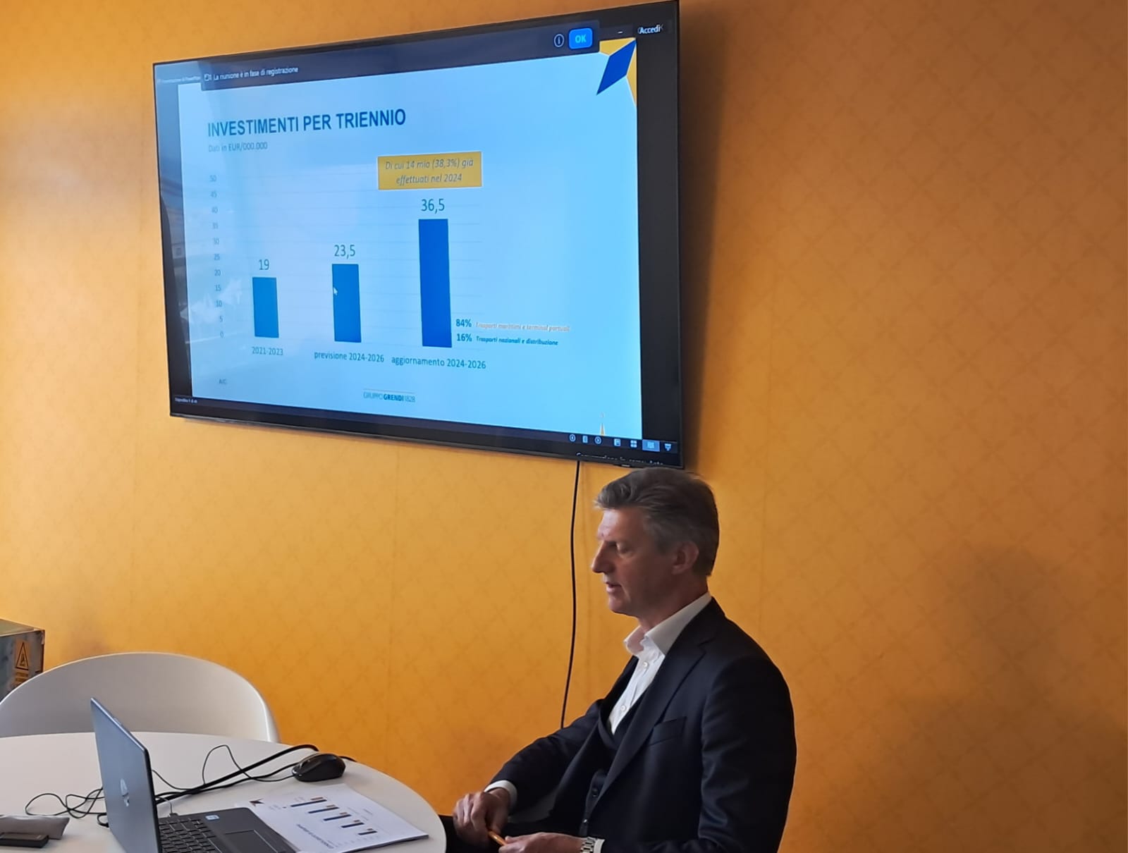 Genova, 11 febbraio 2025. Antonio Musso, amministratore delegato di Grendi trasporti marittimi, alla conferenza-stampa annuale del Gruppo su "Innovazione, adattamento e sostenibilità: rotta 2028 per i 200 anni del Gruppo"