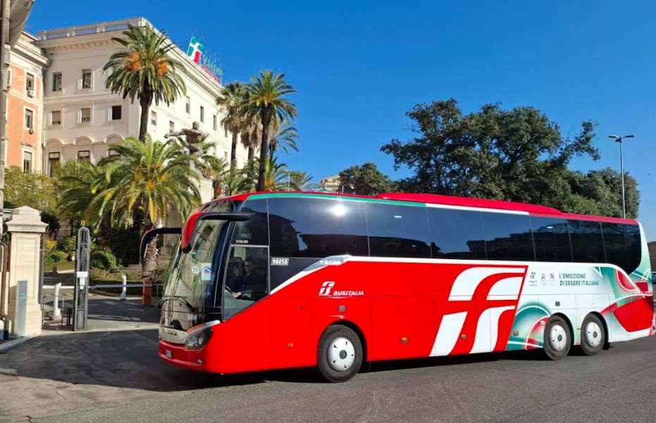 Mezzo di Busitalia (Gruppo Fs) con la livrea dei Giochi invernali Milano-Cortina 2026