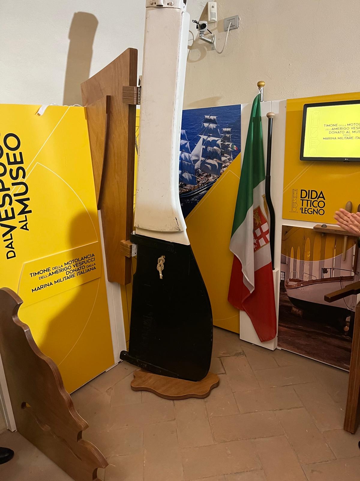 Cesano Maderno (MB), primo marzo 2026, Isabella Rauti (Difesa), Museo didattico del legno inaugura spazio dedicato al "Vespucci": timone in mogano della motobarca della nave-scuola, donato dalla Marina militare italiana
